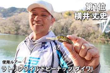 | 1 | 横井 丈史 | 2,850 | 2 | ワイルドピーナッツ/ファントムグリーンクロー(ダイワ) | ||