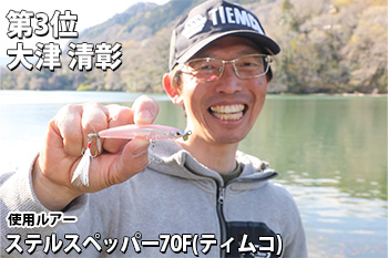 | 3 | 大津 清彰 | 2,410 | 2 | ステルスペッパー70F/ピンキーフラッシュ(ティムコ) | ||