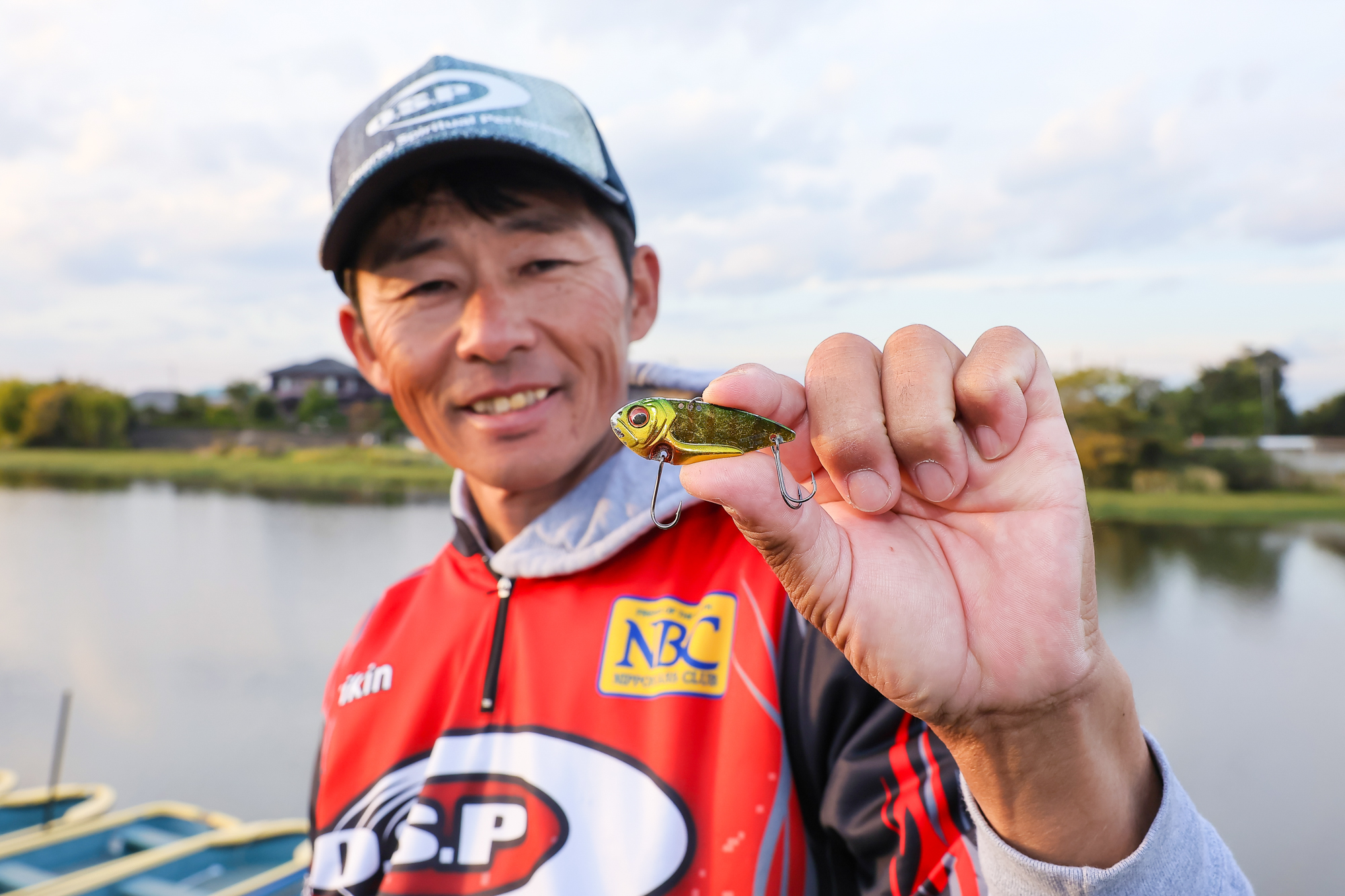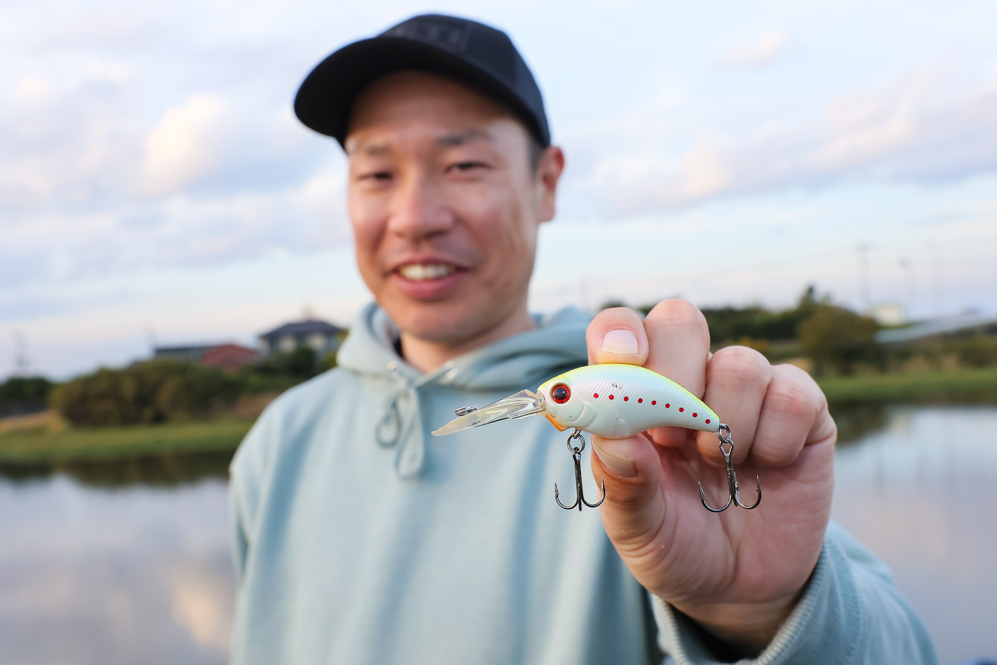 岩浅選手は冠水植物沿いの2メートルブレイクラインにいるバスを狙いシャッドを使用したところ根掛かりが多く反応もいまいちだったため、ブリブリした動きで根掛かりしづらいシャロークランク『BDS1』をドラッギングで引っ張り1m〜2mで使用。何かに引っかかったらトゥイッチして外すとそこでリアクションバイト!